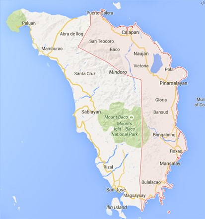 Oriental Mindoro is a province of the Philippines located on the island of Mindoro under the MIMAROPA region in Luzon, about 140 km southwest of Manila. The province has a total land area of 4,238.40 km2; with the western portion of the province being mountainous or rugged, hills and flood plains are widely distributed in the eastern portion. Mount Halcon, standing 2582 m above sea level, is the 18th highest mountain in the country and is the province’s and island’s highest peak.